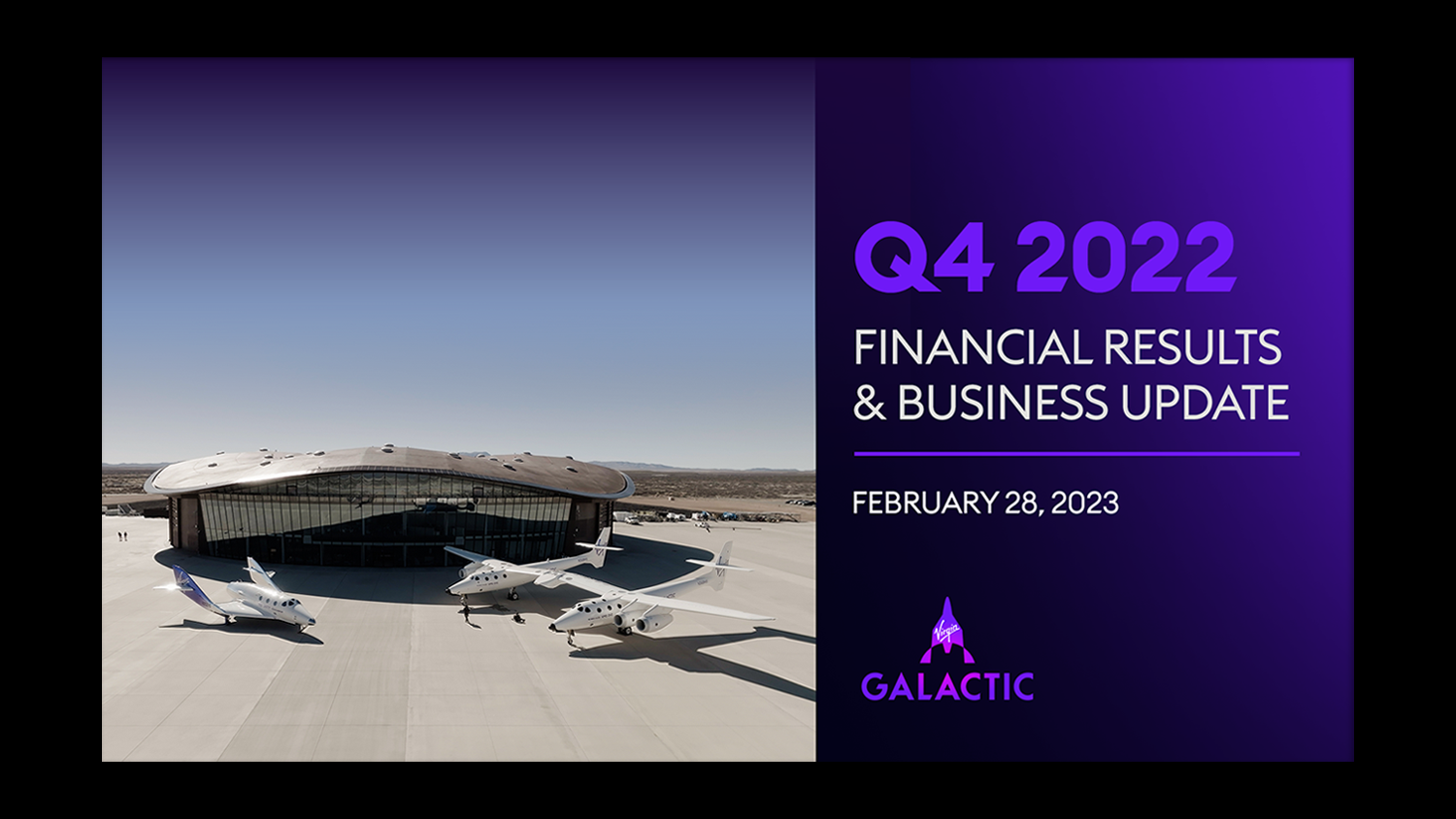 ORANGE COUNTY, CALIFORNIA. – February 28, 2023 – Virgin Galactic Holdings, Inc. (NYSE: SPCE) (“Virgin Galactic” or the "Company”) today announced its financial results for the fourth quarter and full year ended December 31, 2022 and provided a business update.