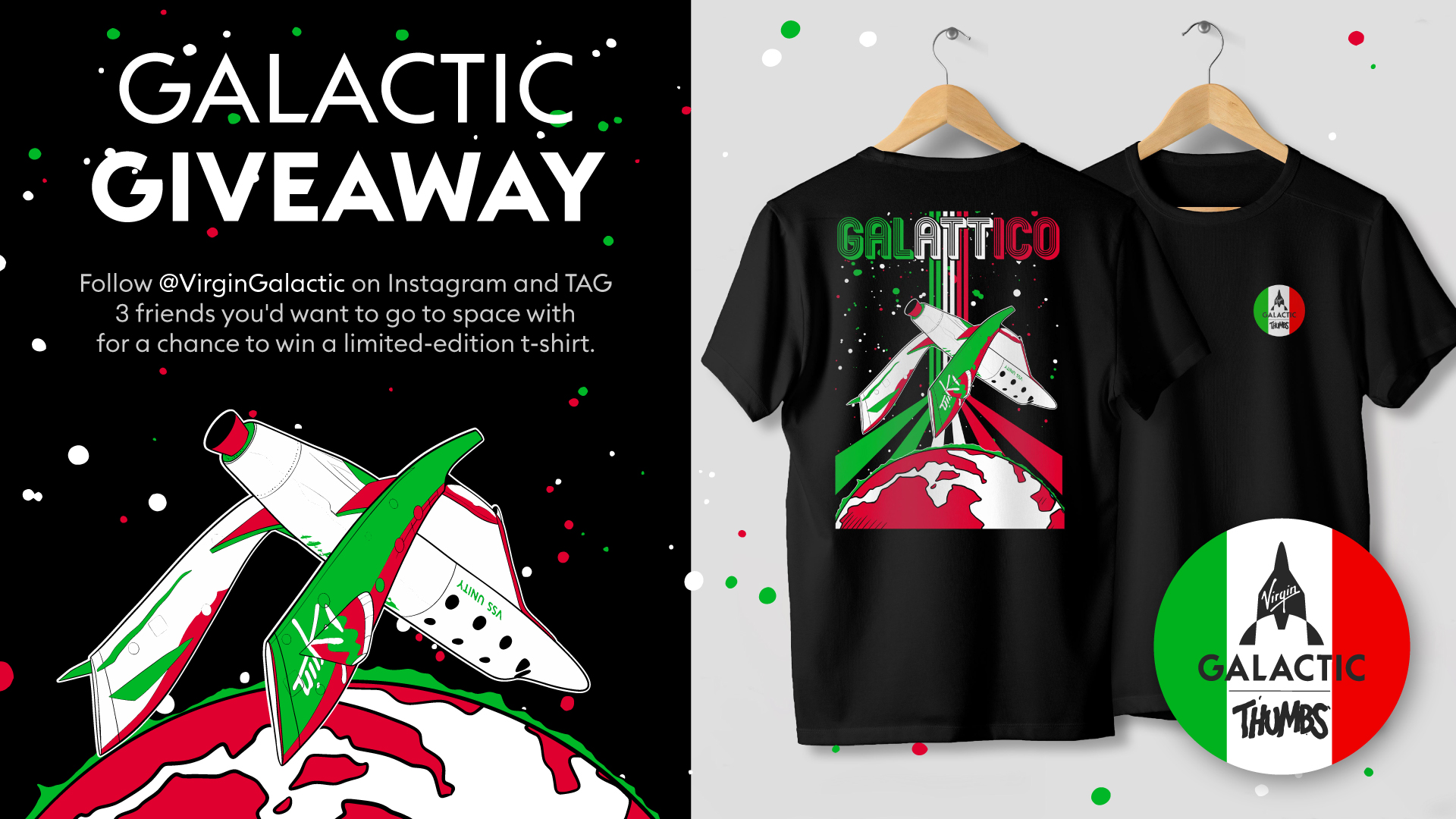 A few lucky winners will receive a limited edition t-shirt designed by UK-based artist, Thumbs. The design celebrates our international partnership and collaboration with the Galactic 01 crew from the Italian Air Force and National Research Council of Italy.